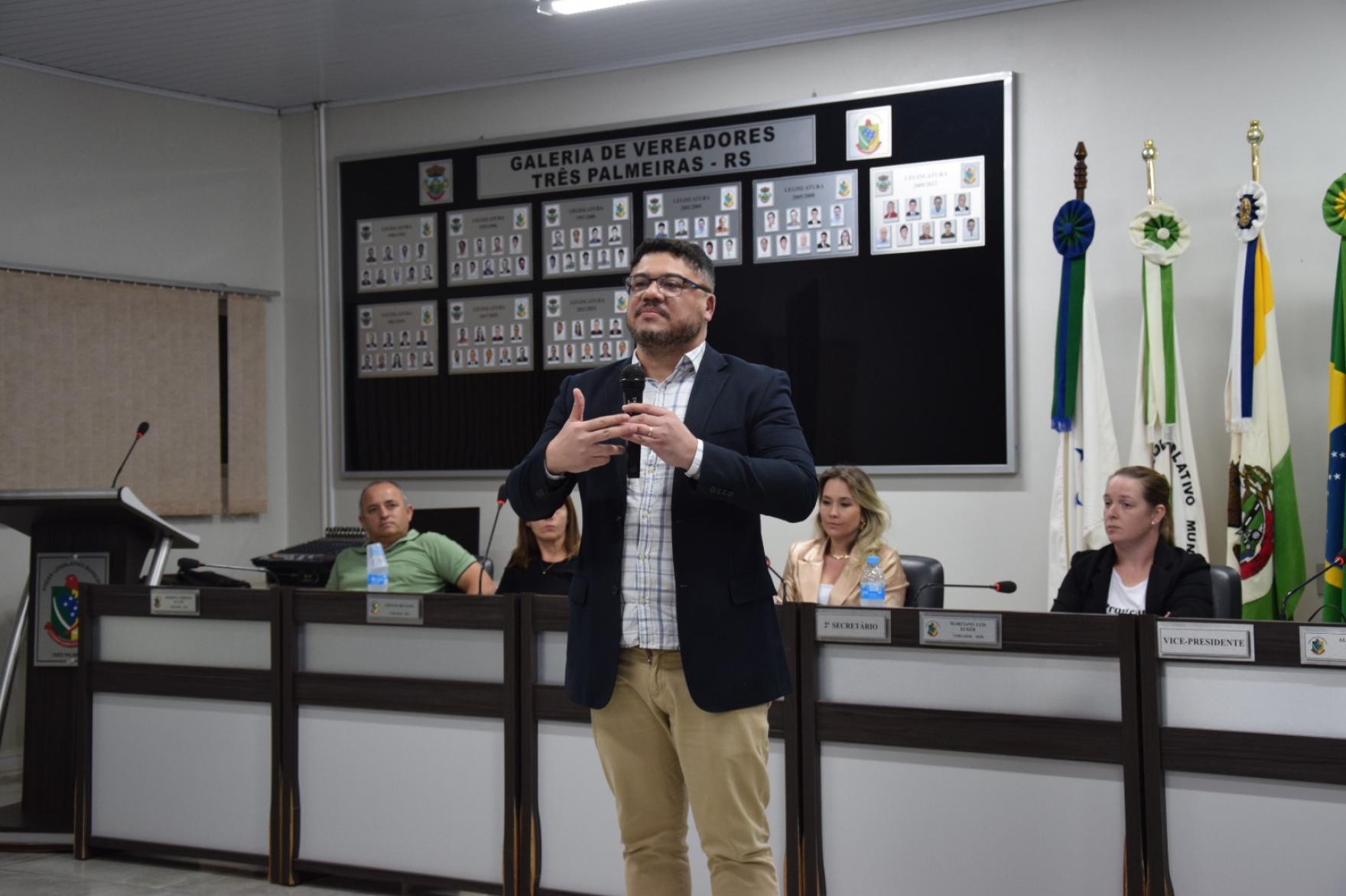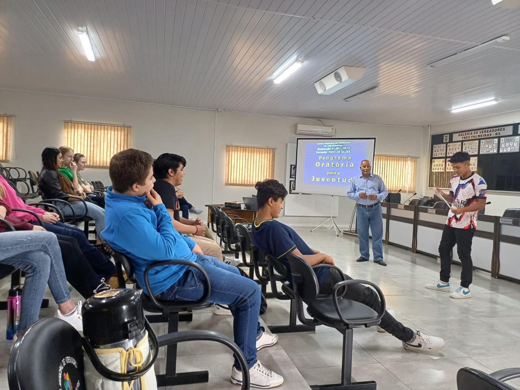 Na noite do dia 07 de junho, a Câmara Municipal de Três Palmeiras, em parceria com o Programa Juventude com Ideais, realizou a conclusão e entrega dos certificados do Curso: “Oratória para a Juventude”. Através da Resolução nº 001/2024, de autoria da Mesa Diretora da Câmara Municipal, foi criado o Curso “Oratória para a Juventude”, com o objetivo de promover treinamento na arte da comunicação verbal, destinado a preparar jovens para o mercado de trabalho. O curso contou com quatro módulos distintos: Módulo I ministrado pelo Dr. Claudio Olivaes Linhares: Oratória e Desenvolvimento da Comunicação; Módulo II ministrado pelo Dr. Giovane Spanner: Influência da Oratória no Empreendedorismo; Módulo III ministrado pela Dr. Alana da Veiga: Comunicação nas Redes Sociais e Módulo IV ministrado pela Dr. Alessandra Castro: Valorização da Família, totalizando 12 horas de aprendizado. O curso teve também a participação do Vereador Enio de Saiba -Presidente da Câmara Municipal, ministrando sobre sua experiência de vida. A entrega dos certificados do Curso de Oratória contou com a presença do Exmo. Sr. Juiz de Direito Dr. Abel dos Santos Rodrigues, ministrando sobre sua vida e sua trajetória.