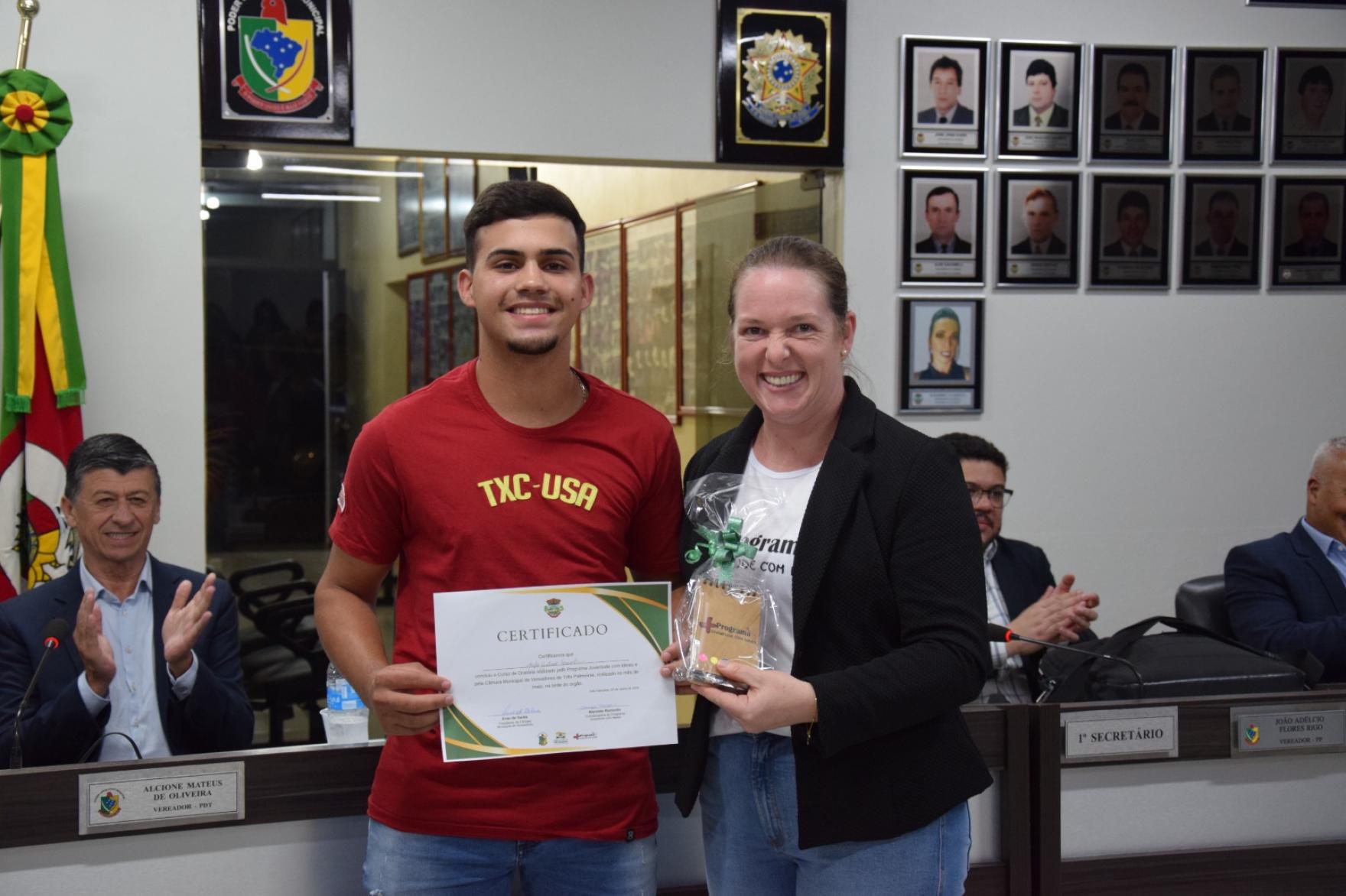 Na noite do dia 07 de junho, a Câmara Municipal de Três Palmeiras, em parceria com o Programa Juventude com Ideais, realizou a conclusão e entrega dos certificados do Curso: “Oratória para a Juventude”.